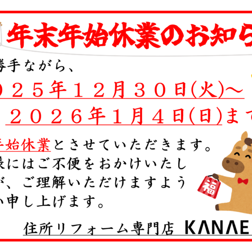 2025年12月30日(火)〜2026年1月4日(日) 年末年始休業のお知らせ