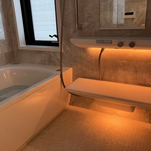T様宅 間接照明と肩楽湯が演出するシンラの上質なくつろぎのバスルーム