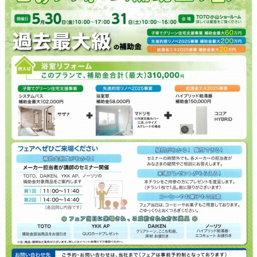 5月30日(金)、31日(土)「春のリフォーム補助金フェア」開催