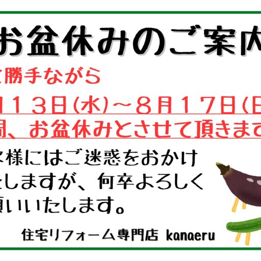 8月13日(水)~8月17日(日) お盆休みのお知らせ